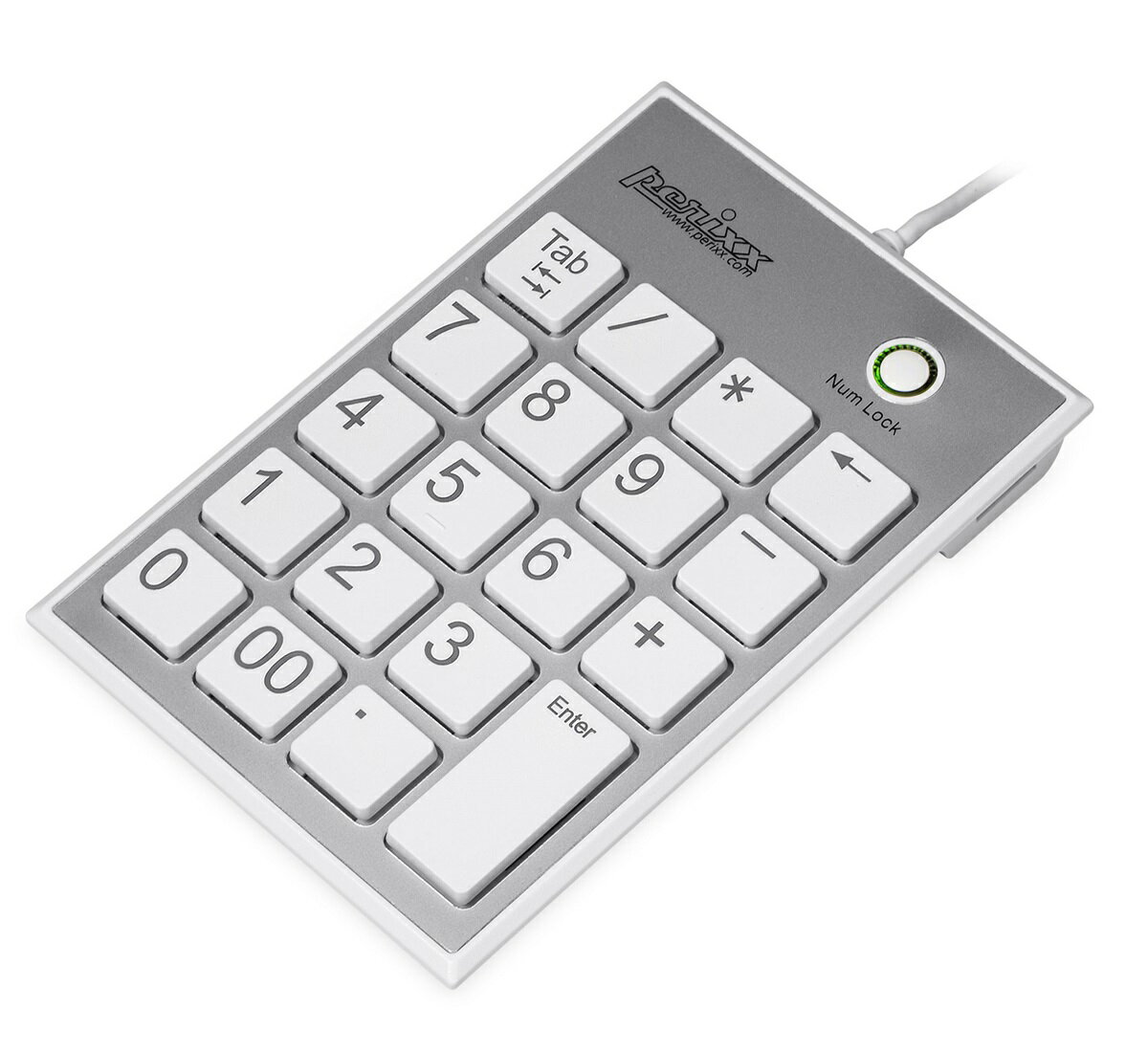 3372_11094 ぺリックス PERIPAD-202HW ノートパソコン用テンキーボード Tabキー付 - USBハブ2個付き 大きく見やすい数字表示 パンタグラフキー採用 ホワイト【正規保証品】(Perixx)